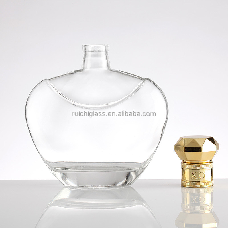 Cina fabbrica di forma quadrata trasparente 700ml 750ml campione bottiglia di liquore 100ml coperchio d'oro