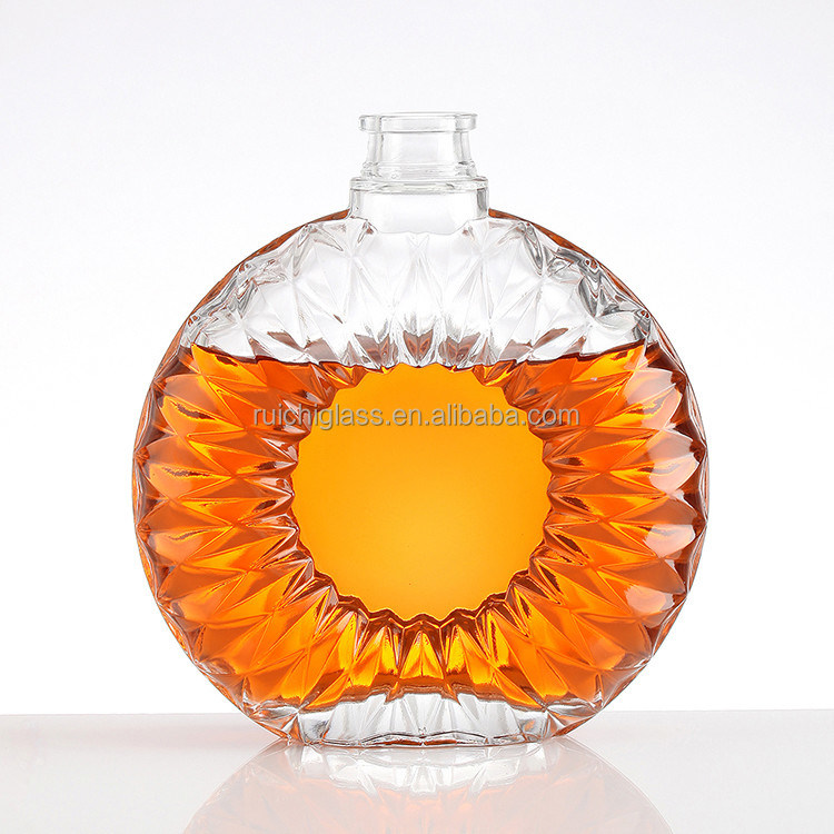 Modello di moda bottiglie in vetro di brandy in rilievo bottiglie in vetro di whisky di lusso